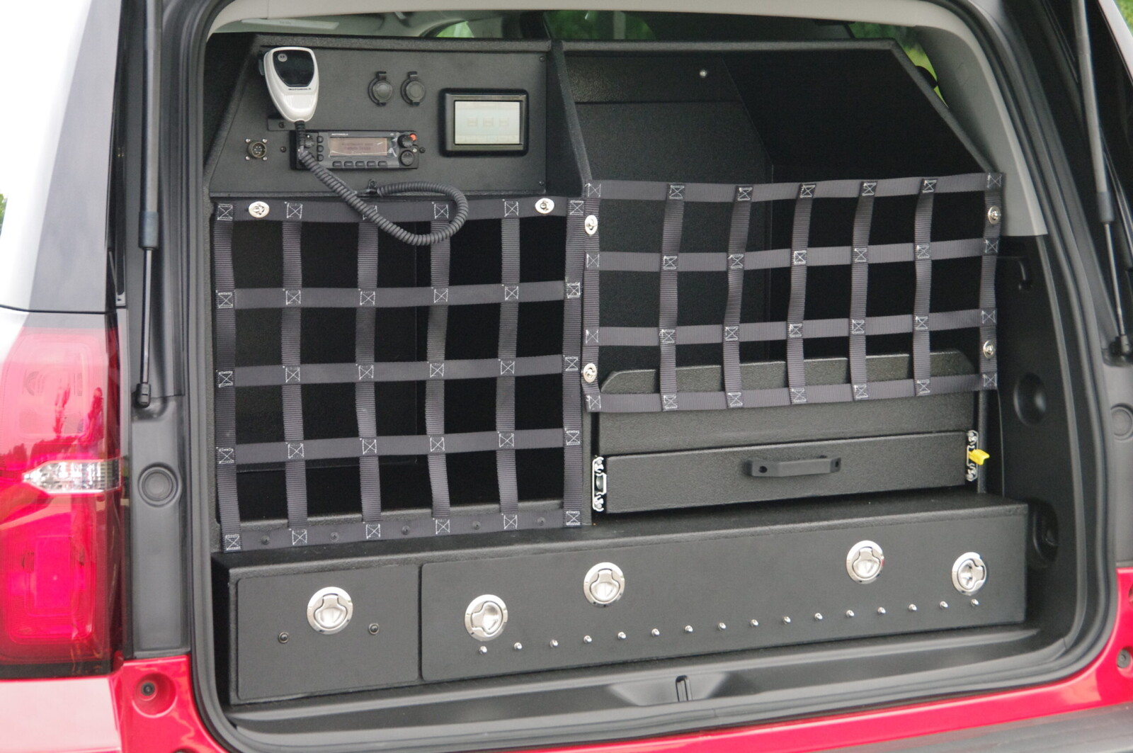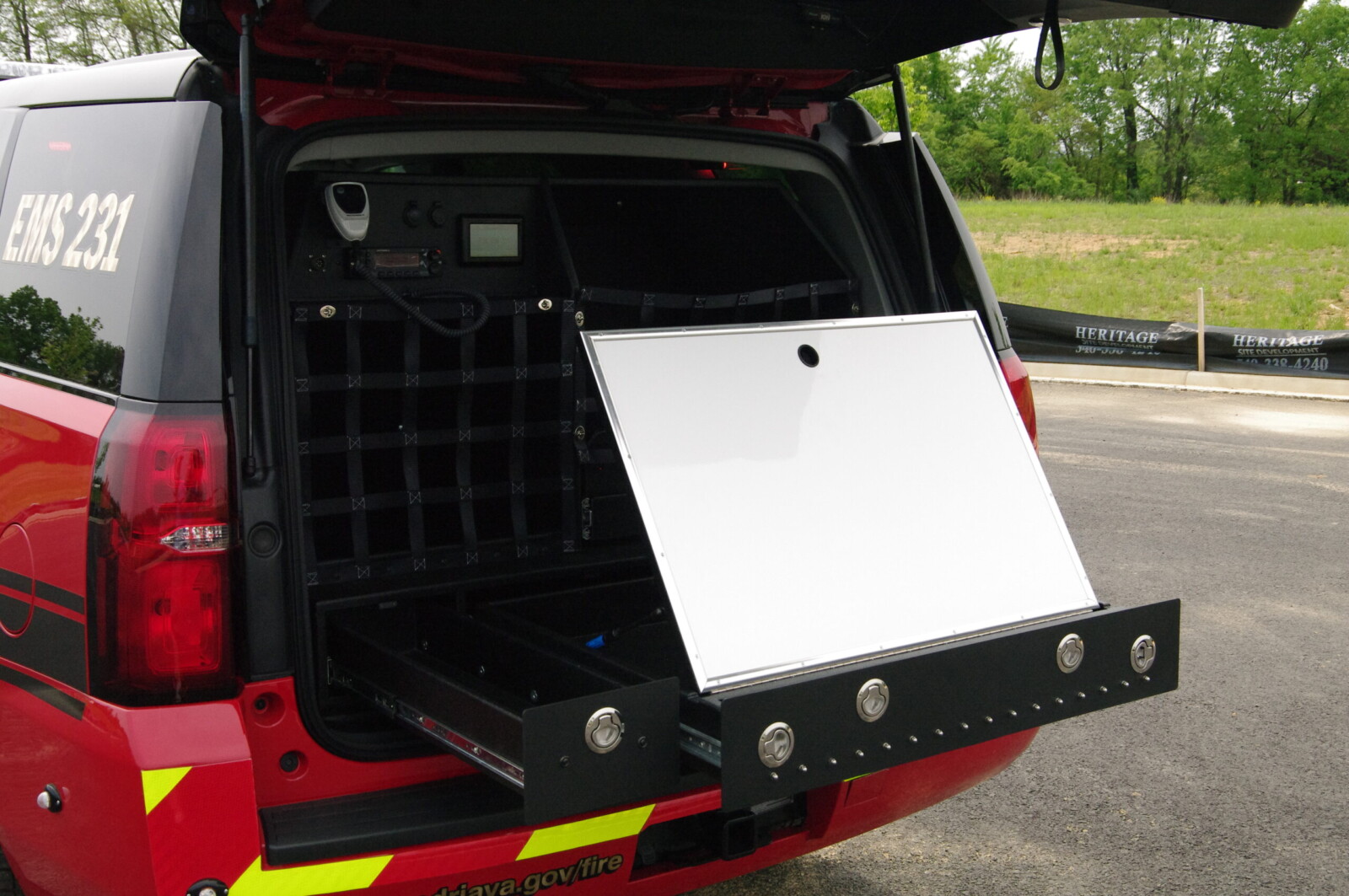 Whelen Lighting System, SCBA Bracket Mount, Mobile Computing System, Radio Charging Dock, Clevis Tilt Mount, Custom Console, Map Storage, Custom Midrow to Rear Cabinetry, Command Board, Templox System.