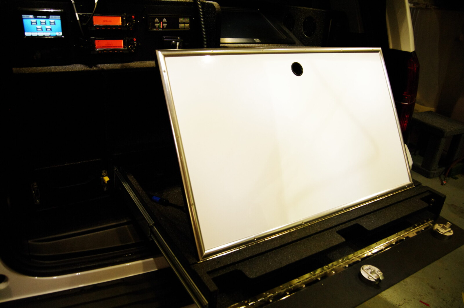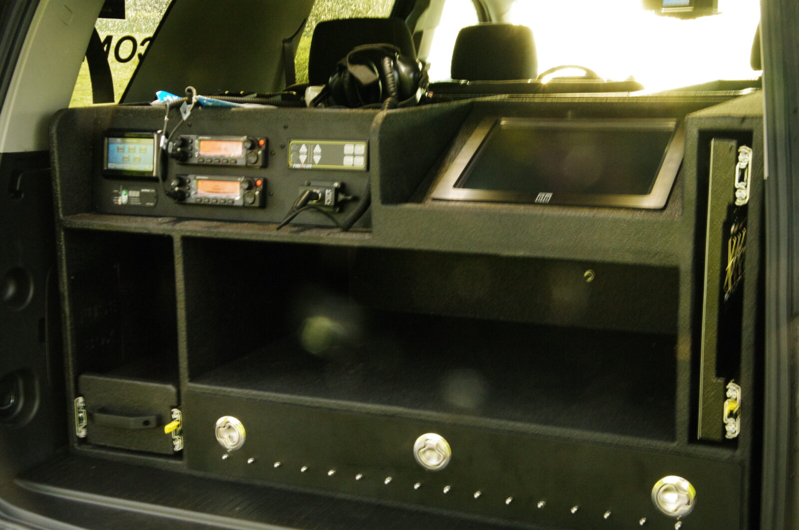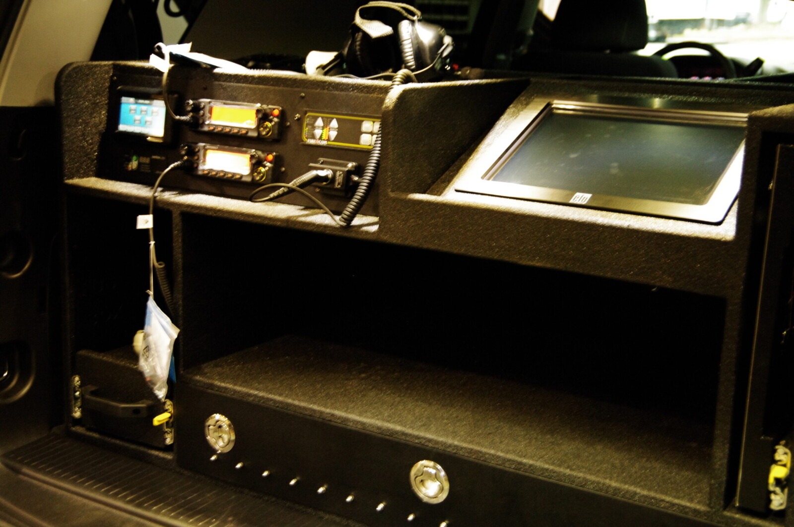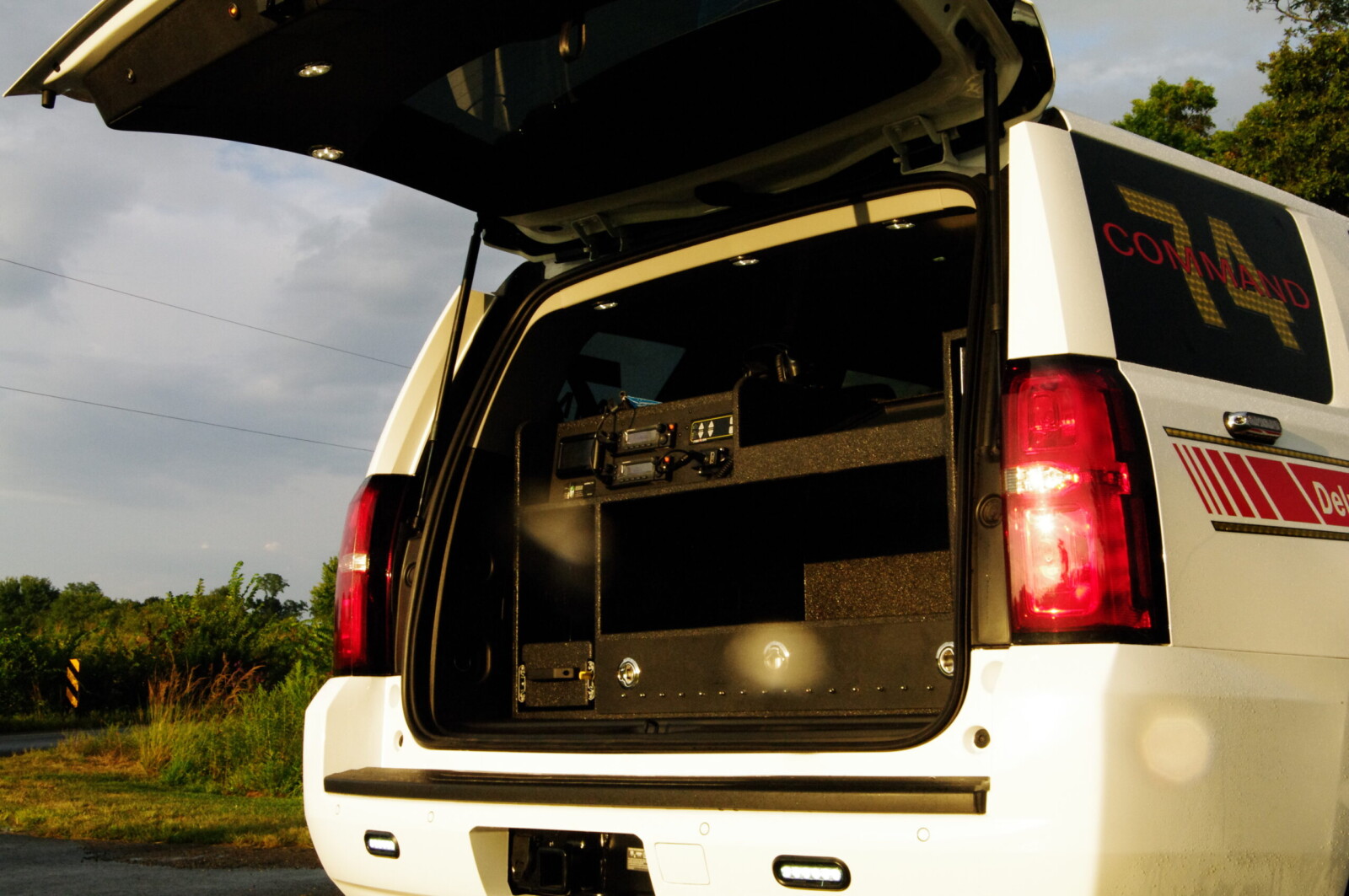 Whelen Lighting System, Grommet Mount, Hands Free Siren, Howler Siren, Mobile Computing System, Radio Charging Dock, Speaker System, Intercom, Custom Console, Map Storage, Custom Rear Cabinetry, Command Board, FastPlex Technology for Lighting and Siren Control.