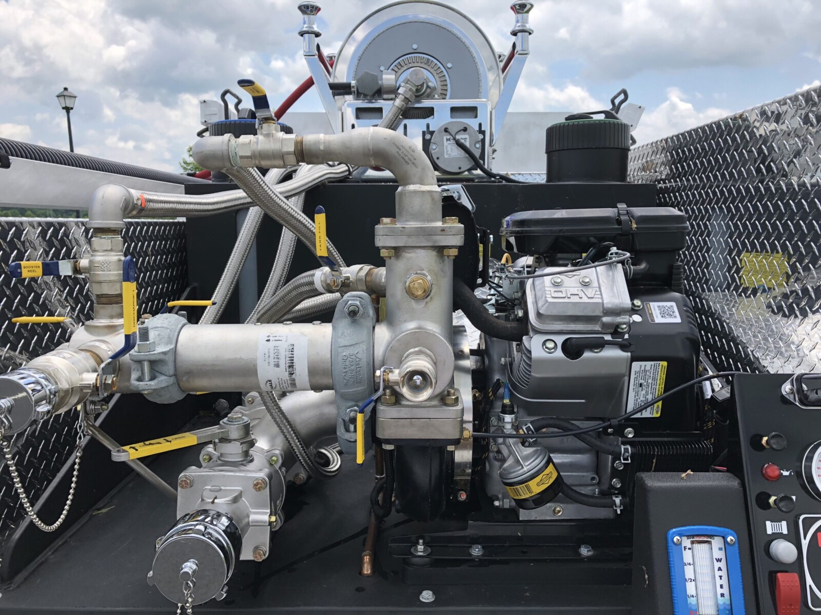 Whelen Lighting and Siren System, Radio System, Custom Console, Aluminum Bed, Hale Pump System, Booster Reel, Warn Winch Kit.