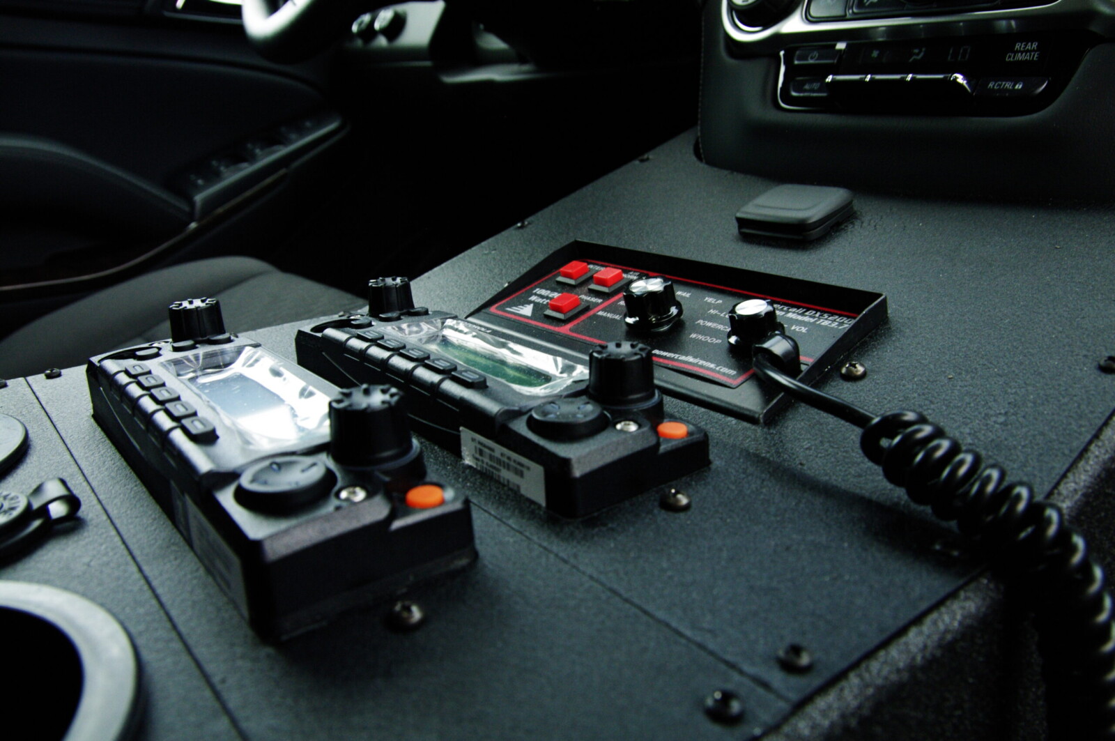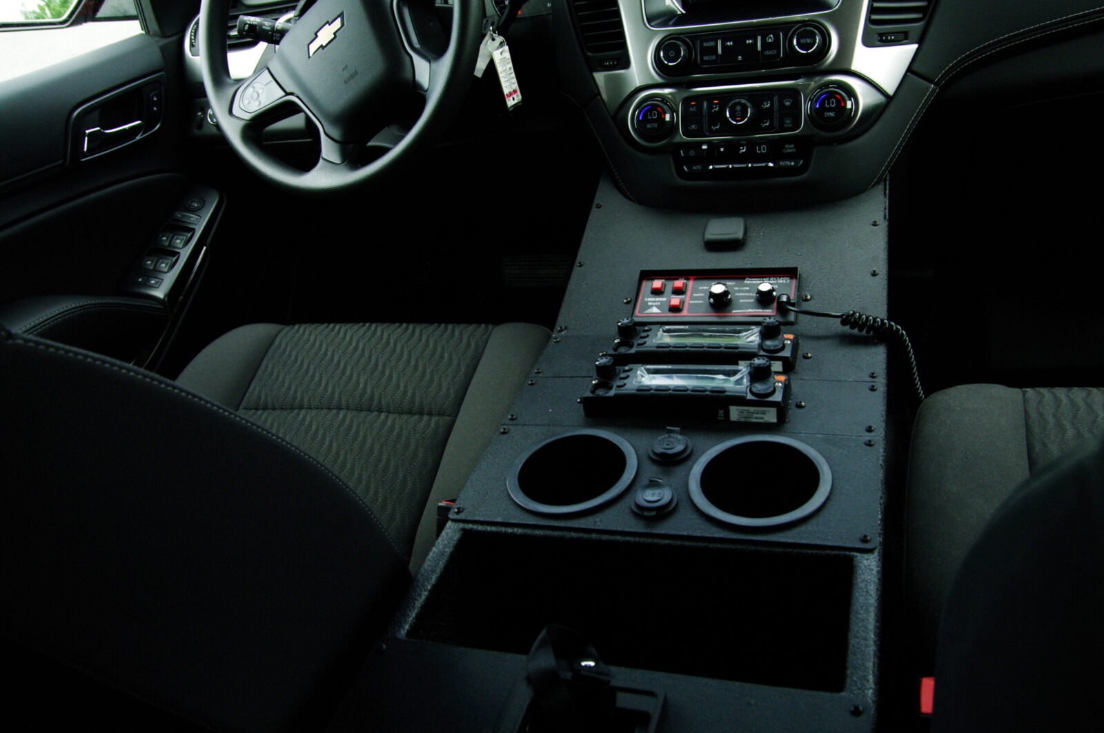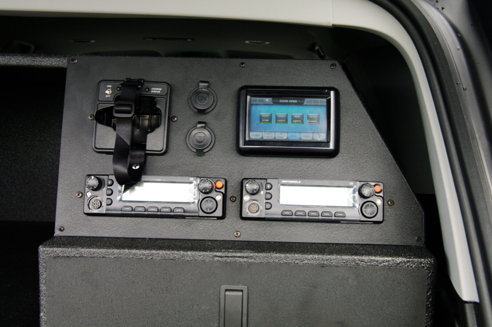 Whelen Lighting System, Howler Siren, FastPlex Technology for Lighting and Siren Control, Grommet Mount, Radio Charging Dock, Custom Console, Custom Rear Cabinetry.