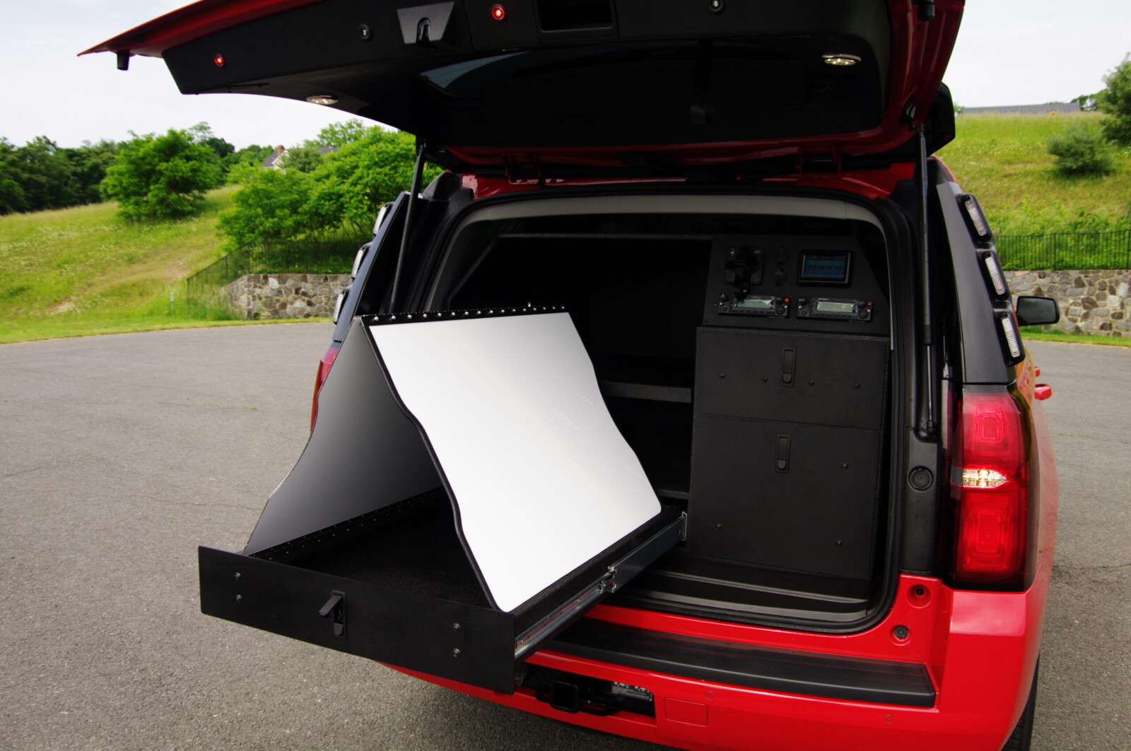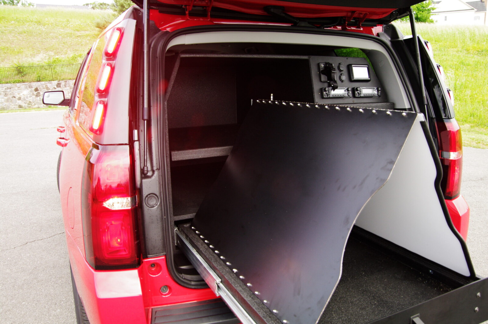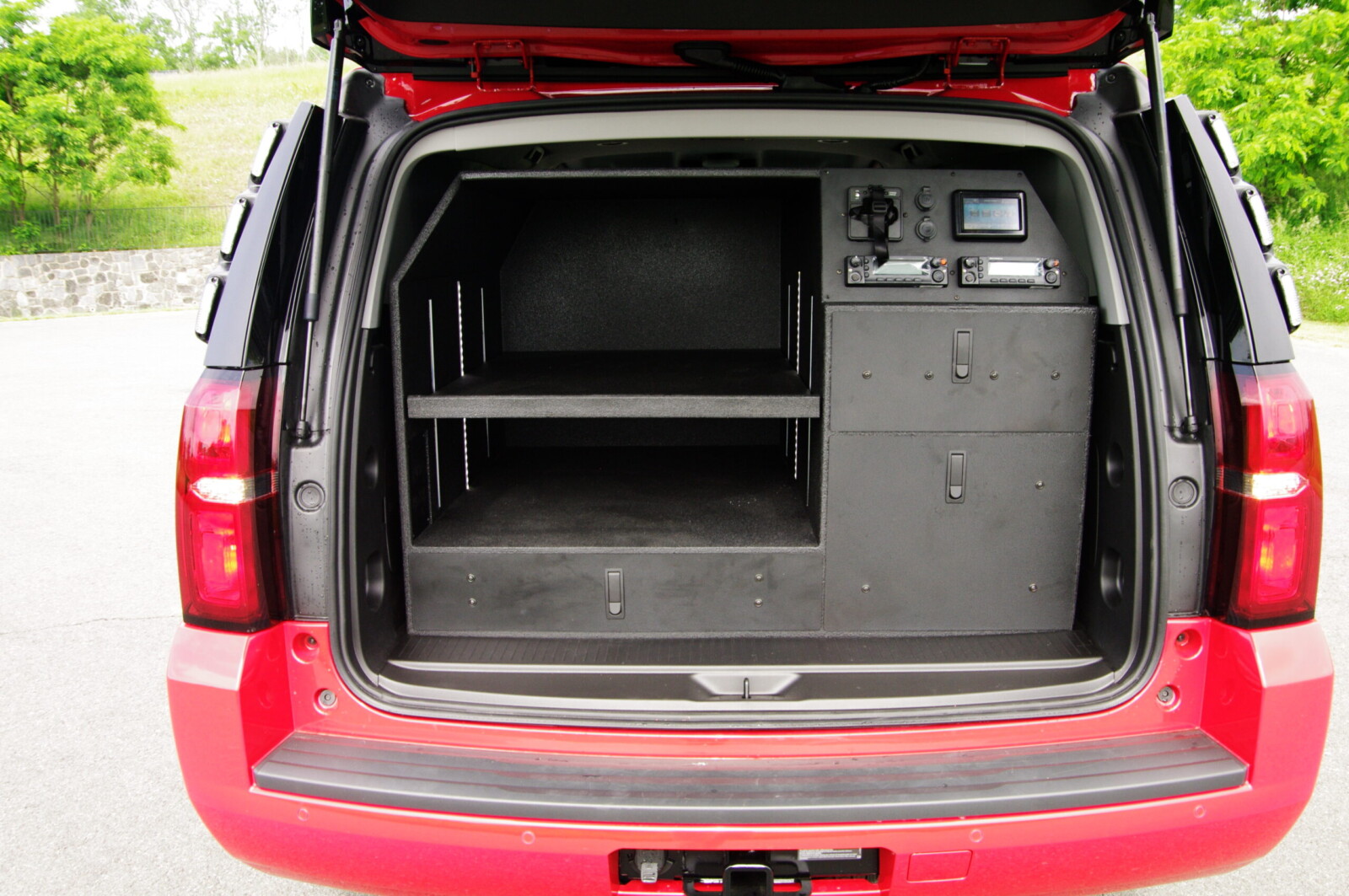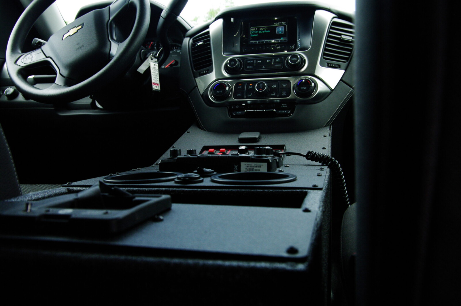 Whelen Lighting System, Howler Siren, FastPlex Technology for Lighting and Siren Control, Grommet Mount, Radio Charging Dock, Custom Console, Custom Rear Cabinetry.